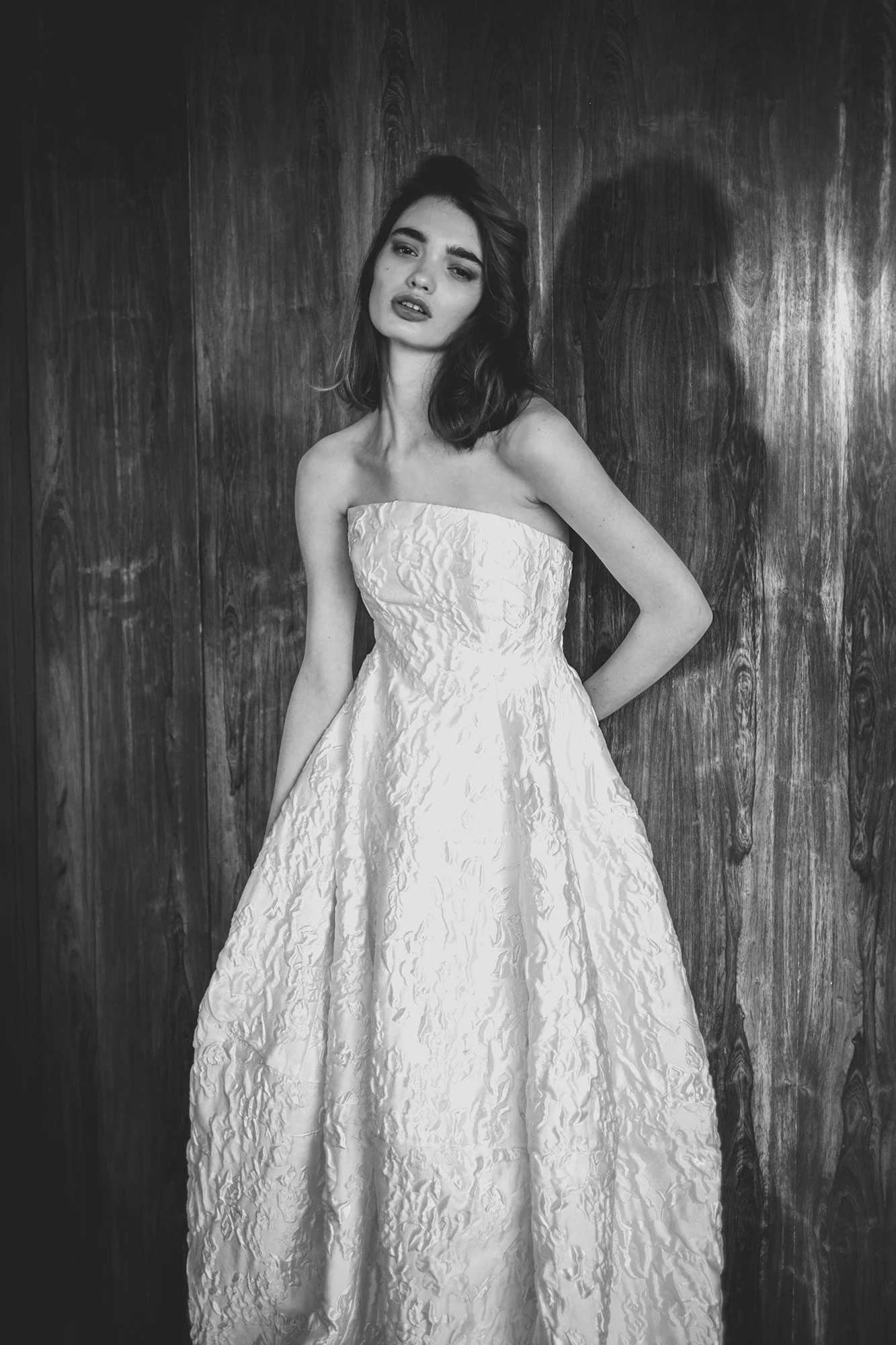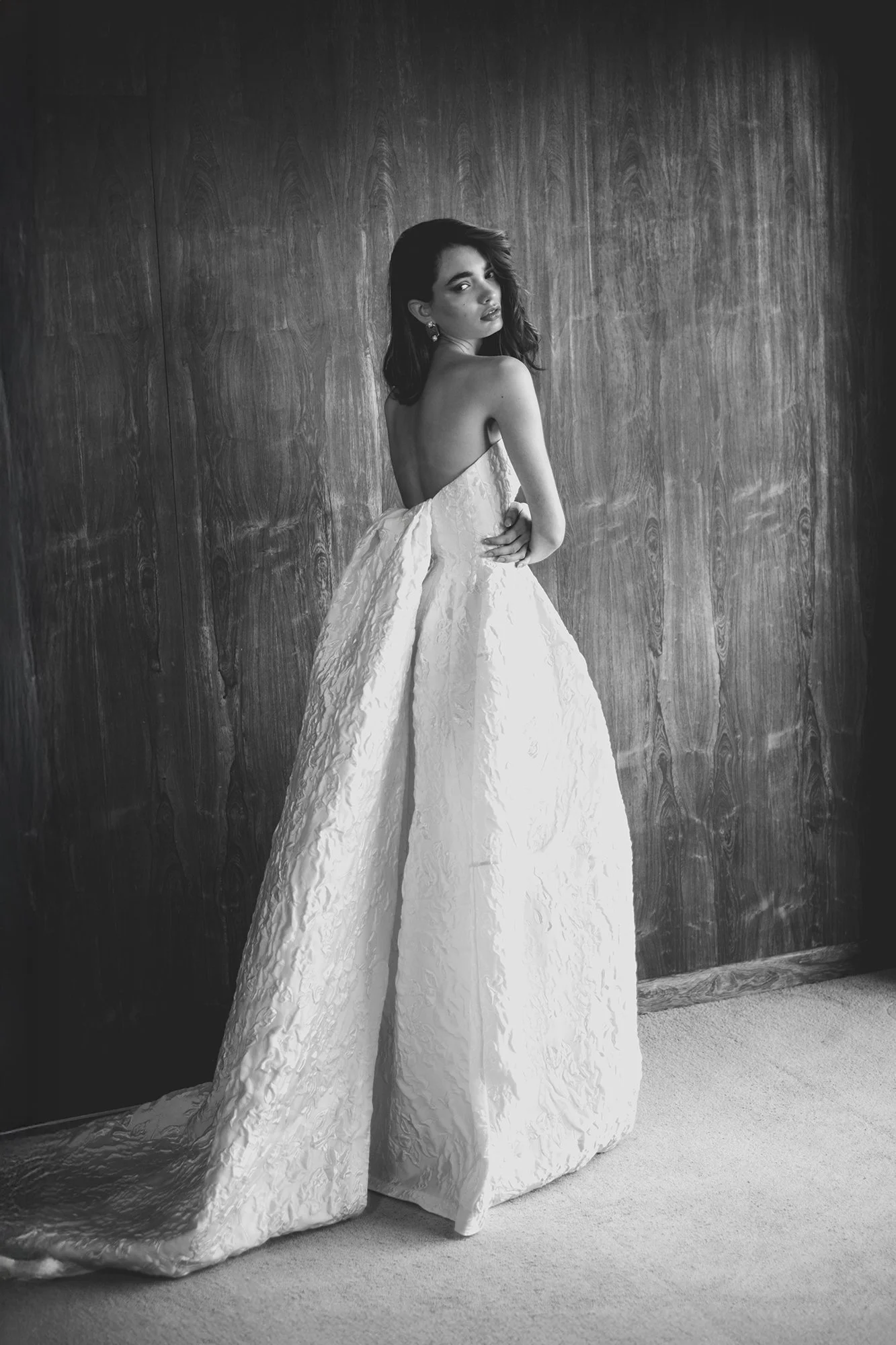 TEXTURED STRAPLESS BRIDAL GOWN + TRAIN